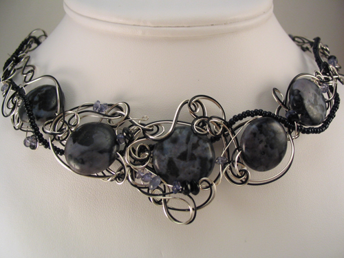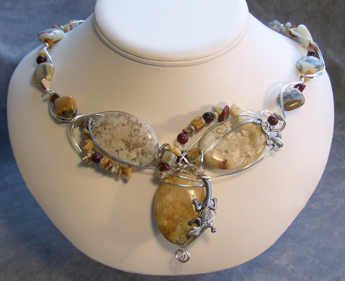 One of my favourite things to do is to create a full necklace. They take a lot of planning and time to execute but oh boy are they fun! Sometimes I have a theme, like a garden landscape or a mythical being like the phoenix - other times I have a beautiful focal stone that just needs to be shown off. Every neckpiece I create is totally original, totally one-of-a-kind - if you buy one of my neckpieces, you can be assured you have the only one!